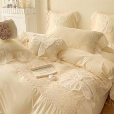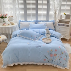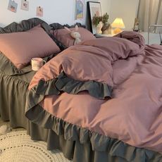 网红款全棉床裙式四件套韩版公主风双人床罩被套纯色床上用品