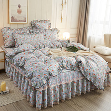 床上四件套全棉床裙款韩版田园公主风荷叶边被套床罩式双人夏