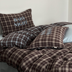 美拉德复古格子全棉色织双层纱布四件套纯棉床单被罩双人床上用品