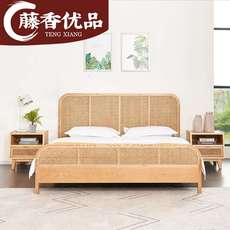 藤编北欧实木床主卧家用现代简约1.8米双人床1.5m民宿高箱储物床