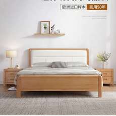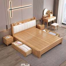 北欧实木床1.8软靠双人大床1.5m现代简约小户型卧室储物原木风床