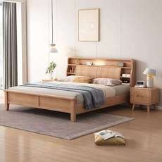 北欧全实木床1.8米白蜡木双人床原木风卧室大床1.5米多功能储物床