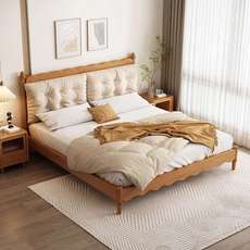 北欧实木床双人软靠白蜡木轻奢1.8米主卧1.5米现代简约小户型婚床