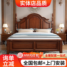 复古轻奢美式实木床1.5米1.8双人床家用主卧婚床乡村民宿大床
