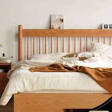 北欧实木床简约樱桃木1.5米单人床日式现代原木1.8米双人床悬浮床
