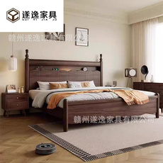 黑胡桃木b实木床新中式主卧约储物双人床婚床大床1.8m1.5米