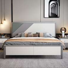灰色实木床搭色系列现代简约1.5米1.8m卧室板木结合经济型双人床