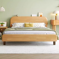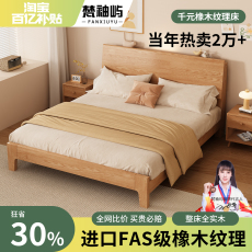 政府补贴全实木床现代简约双人床1.5米床橡木原木色1.2米单人床架