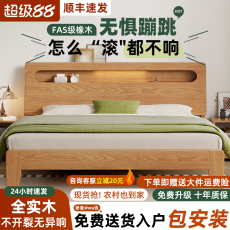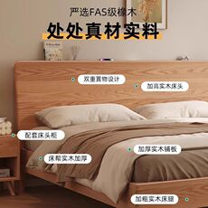 纯实木床现代简约1.5米床双人床家用1.8橡木储物床小户型单人床架
