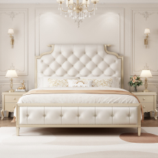 美式轻奢实木床现代简约1.8米主卧室双人床1.5米公主床欧式真皮床