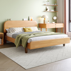 全榉木实木床现代简约1.8米主卧双人床1.5米高端原木风家用单人床