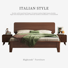 北欧全实木床架1米8胡桃木轻奢双人高端大气主卧现代简约1.5家用