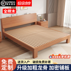 全实木床现代简约双人床主卧1.5米家用原木床出租房1.2米单人床架