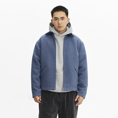 TOPTIER BRO 羊毛混纺撞色翻领底特律夹克男宽松挺括毛呢短款外套
