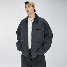 经典腔调 复古做旧原浆底特律帆布夹克 J01J97高街cleanfit外套潮