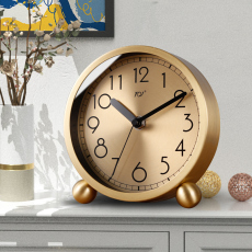 TQJ黄铜简约座钟家用台式坐钟静音桌面钟时尚台面床头石英电波表