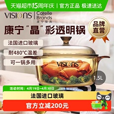 康宁VISIONS晶彩玻璃锅1.5L双耳煮炖煲汤透明琥珀锅原装进口