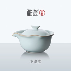 雅瓷汝窑小隐壶功夫陶瓷家用泡茶壶冰裂天青色手抓单壶开片小盖碗