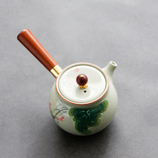 汝窑侧把壶茶壶单壶开片可养冰裂日式简约家用陶瓷功夫茶具泡茶壶