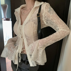 垂感防晒衬衫外套女新款宽松休闲叠穿外搭开衫薄款透视雪纺上衣潮