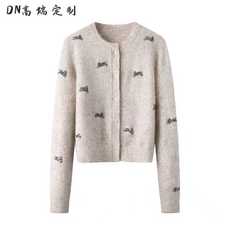DN高端定制2025秋新款亮片兔刺绣开衫短款修身上衣单排扣针织衫女