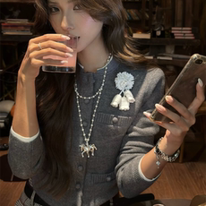 复古高级感灰色针织小香风外套女秋冬季气质修身显瘦短款上衣开衫