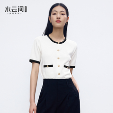 水云间白色小香风短袖毛针织衫女短款外套叠穿上衣撞色边气质2025