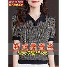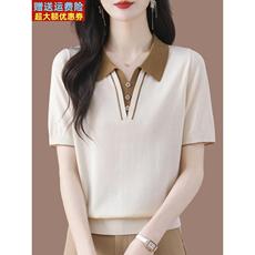 品牌夏季Polo领针织衫桑蚕丝t恤短袖女翻领冰丝时尚年轻妈妈上衣