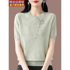 桑蚕丝短袖t恤女2025夏季国风冰丝上衣妈妈装洋气减龄针织小衫薄