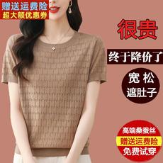 名品牌桑蚕丝短袖t恤女夏装2025新款中年妈妈薄款大尺码针织衫上