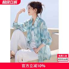 沫晗依美斑斓海面小衫2025夏季新晕染印花宽松休闲独特外套衬衫女