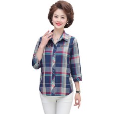 纯棉女士衬衫2022妈妈装春夏全棉衬衣中袖洋气上衣中老年格子外套