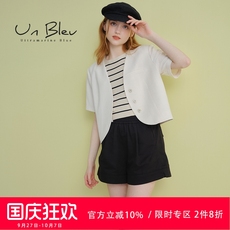 UnBleu短袖外套女夏季新款气质时尚轻奢女装黑色显瘦短款上衣