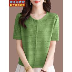桑蚕丝短袖针织开衫女2025夏季新款宽松镂空短袖T恤外搭冰丝上衣