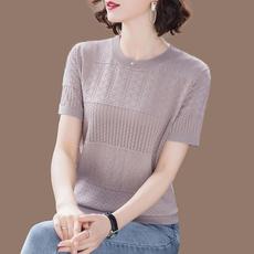 桑蚕丝短款上衣夏季冰丝针织衫女士洋气小衫时尚百搭短袖真丝t恤