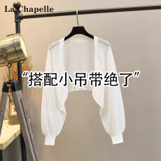 拉夏贝尔冰丝防晒开衫女士夏季薄款镂空披肩罩衫灯笼袖小坎肩外套