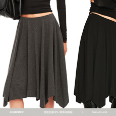 PUKI 原创中腰不规则下摆 弹力针织百搭半裙