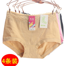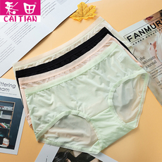 彩田冰丝内裤女士中腰30605薄蕾丝边速干抑菌高腰30606大码组合装