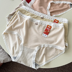 彩田内裤女25年秋冬新款中腰莫代尔棉质印花蕾丝边少女三角短裤衩