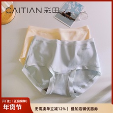 彩田全棉内裤女中腰15296高腰32293新疆全棉云柔棉糖果色日系包臀