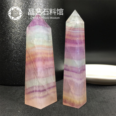 极速天然七彩萤石柱子糖果色彩虹六棱单尖四面柱水W晶原石摆件一