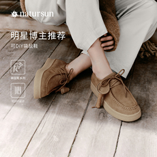 DESERTO 牛反绒头层牛皮轻德训撞色鞋带平底休闲复古德训鞋内增高