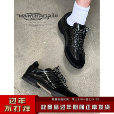 韩桥日记[幽渊系列]"黑尾"通勤百搭黑武士德训鞋男亮面休闲小皮鞋