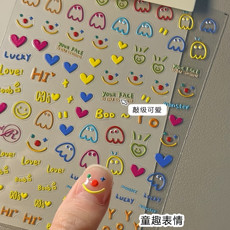 小红书同款童趣表情美甲贴纸多巴胺可爱小熊涂鸦立体胶背指甲贴花