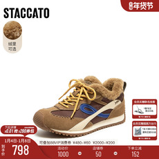 思加图新款复古毛毛鞋加绒保暖德训鞋休闲板鞋单鞋女鞋子C6797AM5