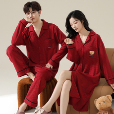 新郎新娘结婚睡衣情侣春秋季纯棉新婚新人红色家居服一男一女套装