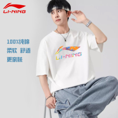 李宁短袖男款T恤 夏季新款轻薄纯棉透气圆领套头半袖情侣文化衫女