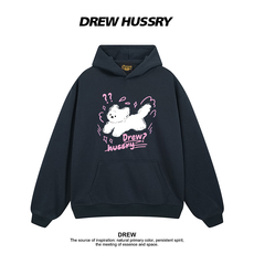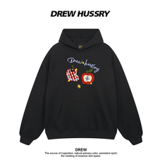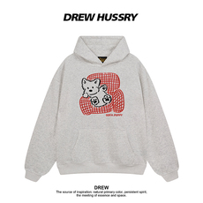 Drew美式潮牌趣味沙发狗狗印花、纯棉连帽卫衣男女秋冬情侣装上衣