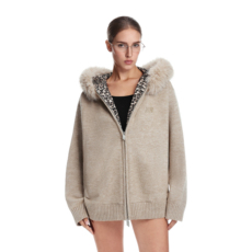 FDR官方店 毛领豹纹毛衣开衫外套女2025新款秋冬连帽情侣针织衫男