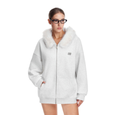 美式复古连帽银狐绒卫衣男女秋冬季新款情侣加绒学生百搭套头外套